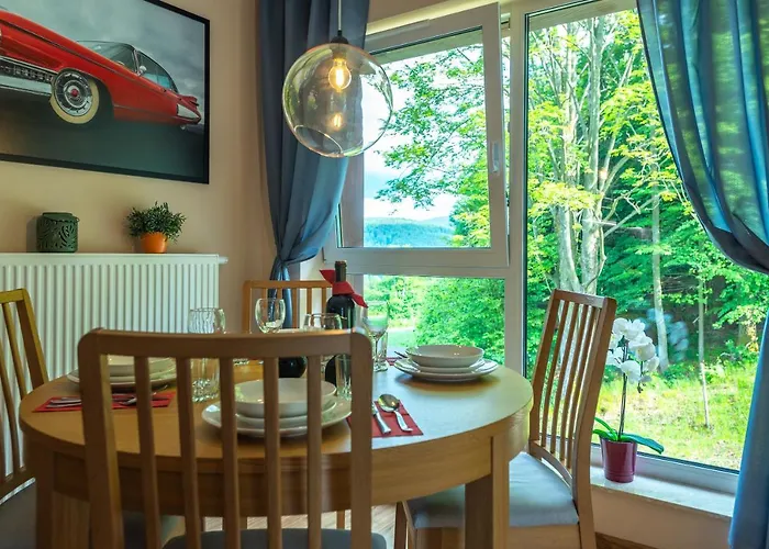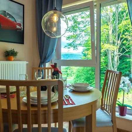 Apartament Vintage Appartement appartement van 50 m^2 bevindt zich binnen 5 minuten loopafstand van Church of the Immaculate Heart of Mary in Szklarska Poreba en heeft uitzicht op de berg. Het appartement biedt ook privé parkeergelegenheid ter plaatse.